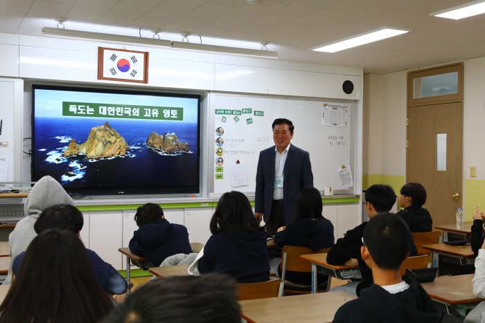 ‘독도 수호’ 주제로 한 이 훈 강사가 진행한 강의에서는 독도의 아름다운 자연경관 영상과 함께 역사적 근거가 제시됐다. 강사는 “독도는 역사적으로나 국제법적으로 명백한 우리 땅”이라며, 독도의용수비대가 일본함정이 여섯 번이나 불법 상륙 기도를 했으나 모두 격퇴한 업적 등을 설명하며, 영웅들의 헌신과 나라 사랑 정신을 전했다. 학생들은 “독도를 지킨 영웅들의 용기와 헌신을 잊지 않겠다”고 소감을 밝혔다.