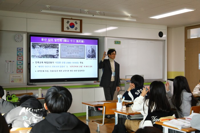 11월 11일, 용남초등학교(교장 문혜령)에서는 6학년 7개 학급을 대상으로 네 명의 강사가 참여해 ‘계룡 이야기’ 강의를 진행했다.