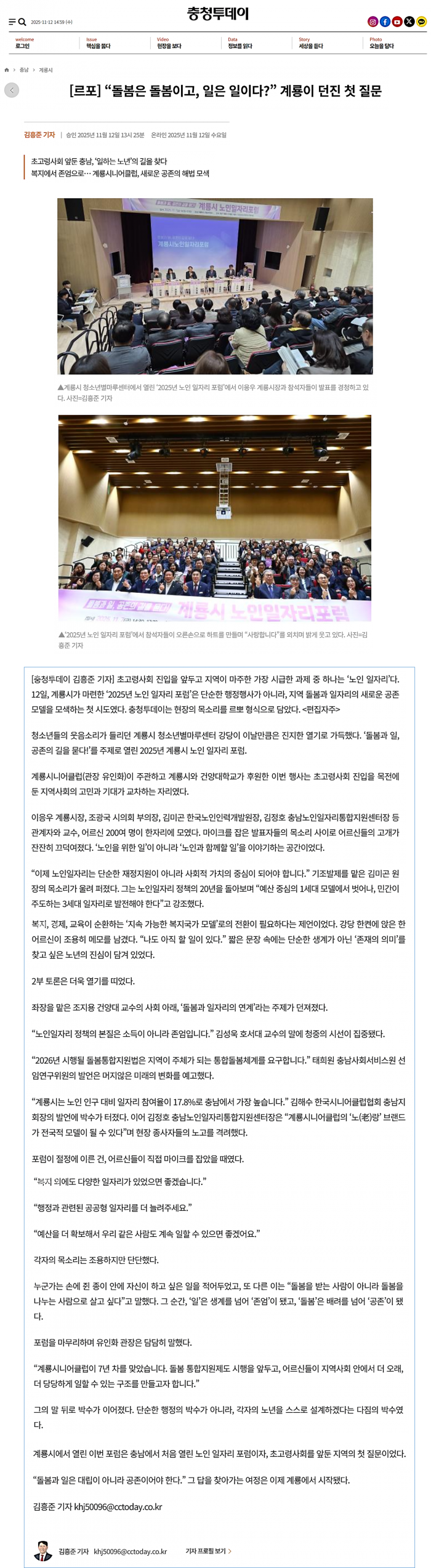 "돌봄은 돌봄이고, 일은 일이다?" 계룡이 던진 첫 질문 [충청투데이(2025년 11월 12일)]