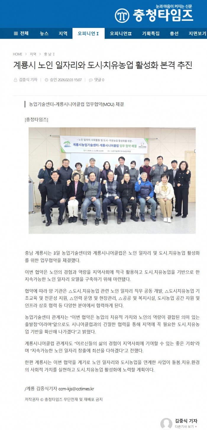 계룡시 노인 일자리와 도시·치유농업 활성화 본격 추진(충청타임스 / 02. 03)