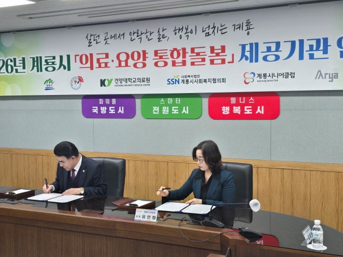 2026년 계룡시 '의료 요양 통합돌봄' 제공기관 업무 협약서 서명 후